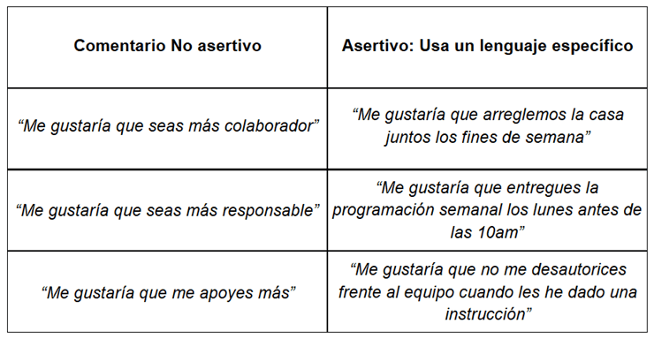 Por ejemplo: “Veo que mi colaborador y yo sí nos hemos comunicado con respeto en otras situaciones y hemos llegado a acuerdos, entonces creo que también podemos solucionar esta situación”.