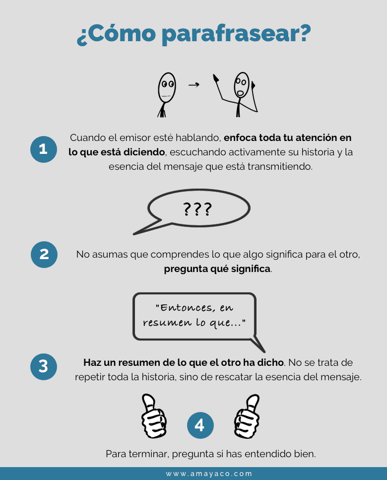 Y cuando la persona haya terminado de hablar puedes parafrasear.