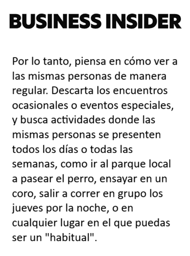 Pueden ser personas que veas regularmente y con quienes no hayas conversado en profundidad, como vecinos o compañeros de trabajo.