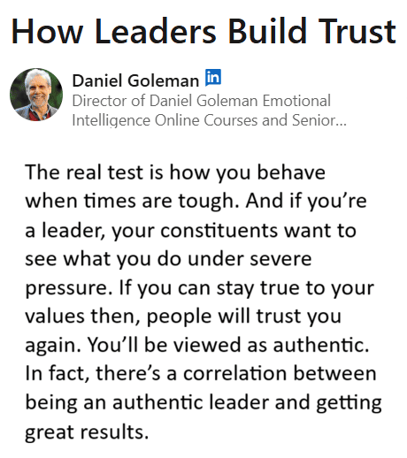 Goleman también explica que los líderes socialmente inteligentes pueden responder hábilmente cuando sus colegas expresan frustración, escuchando activamente, empatizando, y realizando acciones que ayuden a mejorar la situación.